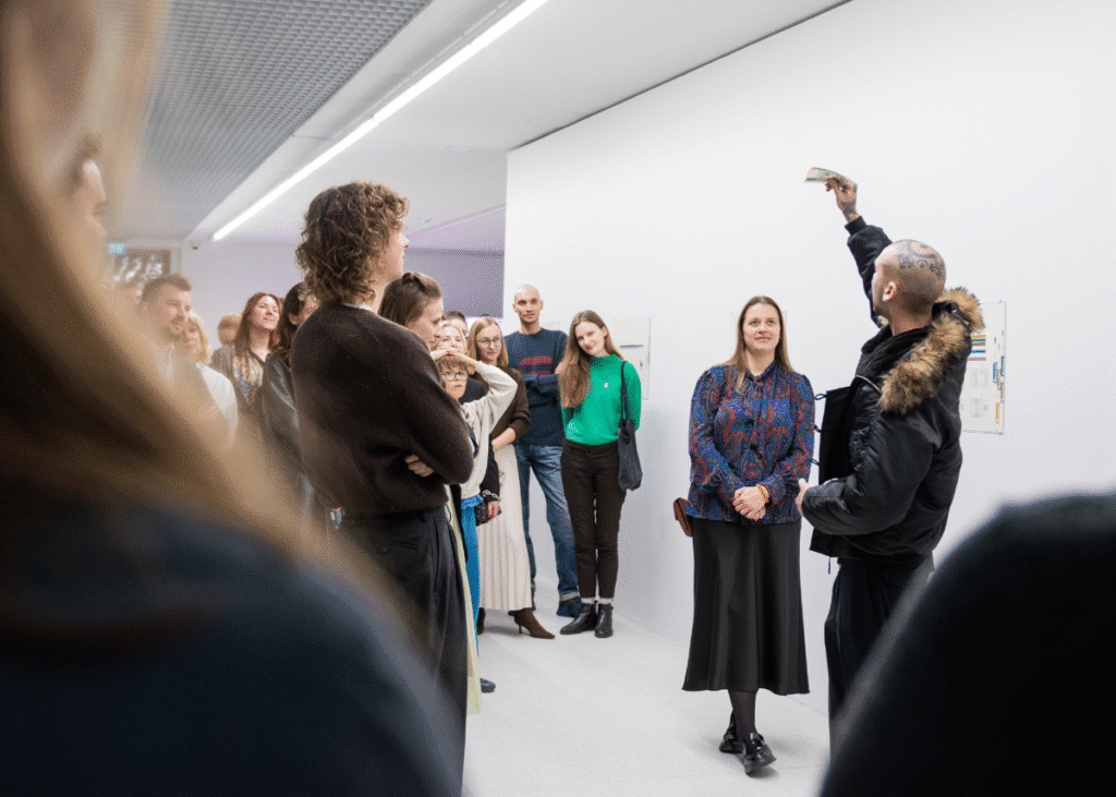 The exhibition begins with the archive of the artist’s father, Rytis Valantinas, who was the designer of some of the first post-independence Lithuanian banknotes. This history—the creation of tangible national value—parallels VIALET’s mission: we are the architects of digital financial infrastructure, facilitating today’s non-physical value.